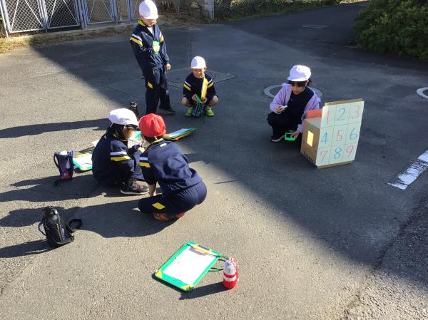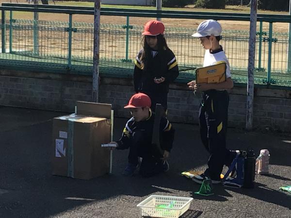 今日は、「太陽の光」の2つ目の実験をしました。まとに、鏡で反射させた日光を当て、待つこと3分。温度を測ってみると・・・。手で触って温かくなることはわかっていましたが、温度計の数字を見てみんな驚きの声をあげていました。鏡3枚分の光を重ねると、かなり温かくなりました。