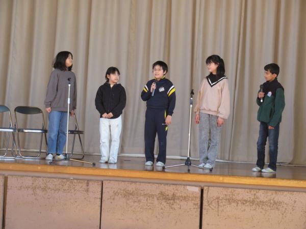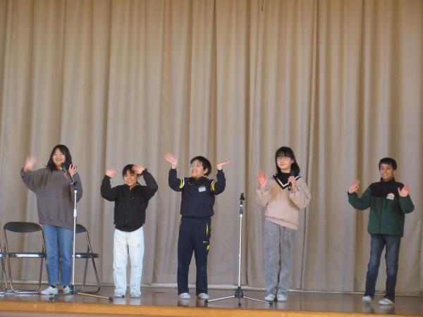 12月20日(土)に、きらくやまふれあいの丘・世代ふれあいの館で行われる「つくばみらい English Day」に向けて、本校代表5名が昼休みにリハーサルを行いました。児童は本番に向けて一生懸命取り組んでいました。
