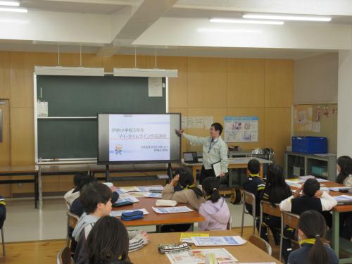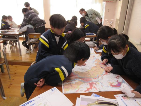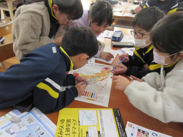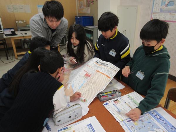 市防災課の職員4名をお招きし、「マイ・タイムライン」について学習しました。 災害時にどのように行動すればよいかを考え、自分や家族の命を守る大切さを学ぶことができました。 ぜひ、ご家庭でも話題にしていただければと思います。