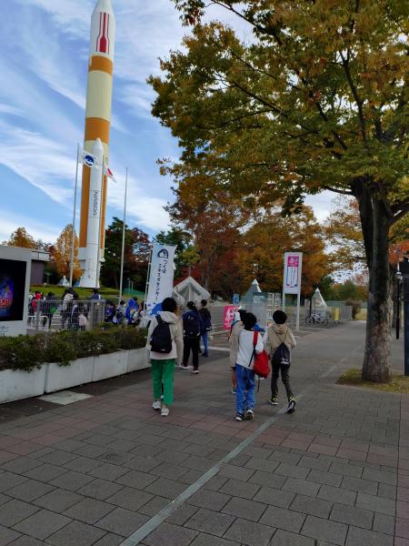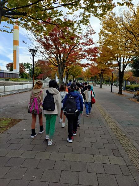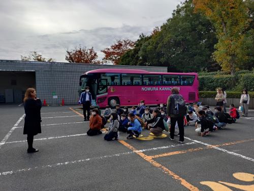 5年生、エキスポセンターに到着しました。まず、集合写真を撮影しました。