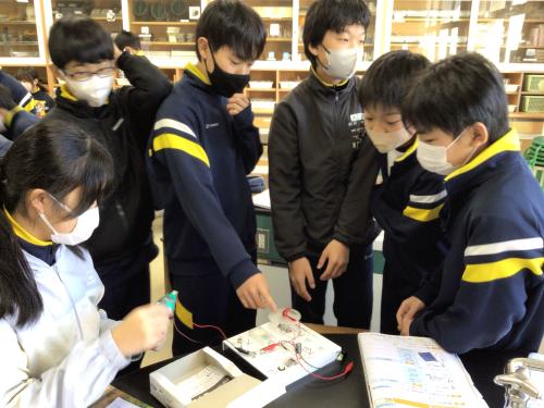 6年生は理科「電気と私たちのくらし」の学習をしています。 手回し発電機と光電池を使い、実験を行いました。 手回し発電機のハンドルをゆっくり回したり早く回したりして豆電球の様子を調べます。 光電池では、強い光を当てた時とシートを使って弱い光を当てた時の豆電球の光り方の違いを調べます。 いくつも試さなければならず大変でしたが、協力して頑張りました。