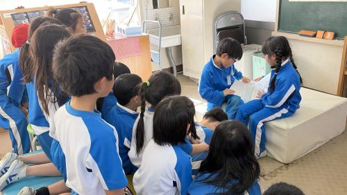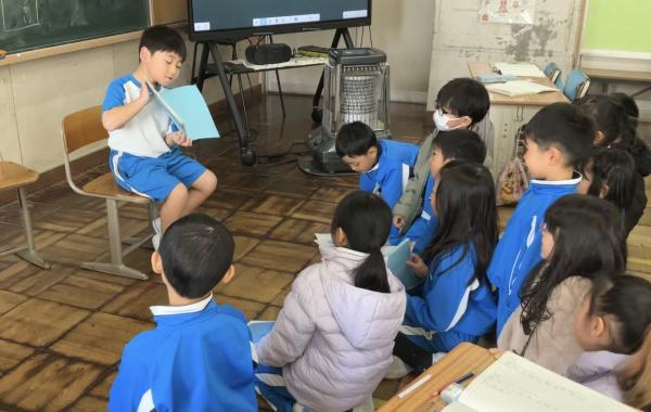 1年生の国語では、お話に出てくる人物を考えて、自分だけのお話づくりをしました。 それぞれオリジナルあふれるお話を考え、絵本や紙芝居などを作り、クラスで読み聞かせをしました。「ハッピーエンドでよかった!」「人物の名前が面白い!」など、友達の作品に興味津々で見入っていました。 これからも読書に親しんでほしいです。