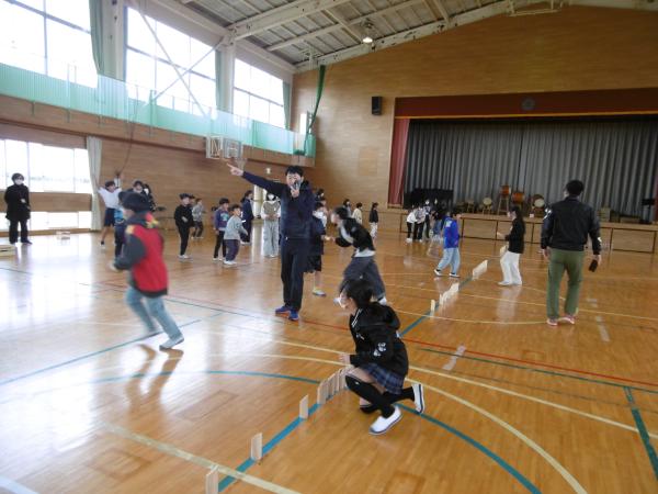 一般社団法人あそび庁をお招きし、さまざまな遊びを紹介していただきました。縦割り班での遊びや給食、他校との交流ができ、みんな大喜びの一日になりました。体験した遊びが今後の子供たちの遊びのひとつになればうれしいです。