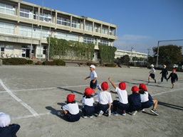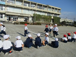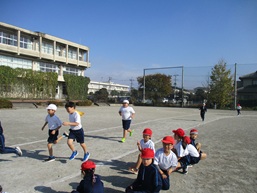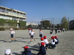 今日の体育は、5分間走をしました。1・2年生は、トラック5~6周できた子が多かったです。友達の周数を数えながら応援する声も響いていました。