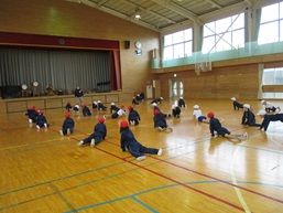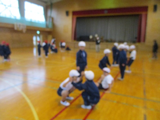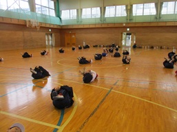今日は、体育館で体ほぐしの運動を行いました。体を伸ばしたり縮めたり、ペアになってバリエーションを広げながら、いろいろな動きで楽しみました。