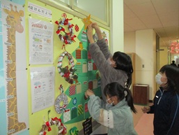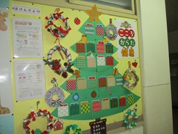 保健室前の掲示物が、クリスマスに一変しました。クリスマスツリーには、毎日を元気に過ごすためのヒントカードが隠されています。忙しい中にも楽しいイベントのある12月。心も体も健康に過ごしたいですね。掲示物は有志の3人が進んで手伝ってくれました。どうもありがとう!