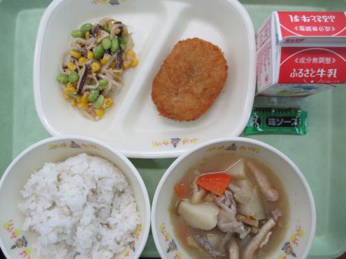 《こんだて》金芽米ごはん 牛乳 コロッケ(パックソース) もやしときくらげのサラダ 豚汁
