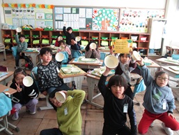 今日も1年生の食缶は空っぽになりました。わかめごはんは、「おいしい!」「大好き!」と言って食べていました。「明日も楽しみ~。」と元気いっぱいの1年生でした。給食センターのみなさま、本日もご馳走様でした。