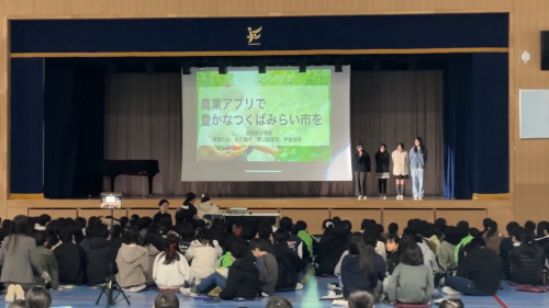 13日に、谷和原中学校区の小学校が、合同で総合的な学習の時間の発表を行いました。6年生が参加し、代表児童がプレゼンの発表をしました。内容は、農業のアプリケーションゲームを通して農業の活性化を図ろうとする企画です。たくさんの児童、市長はじめ市役所職員の前で、堂々と自分たちの提案を発表することができました。富士見ヶ丘小学校、福岡小学校の代表児童の発表も興味深く、児童たちも真剣に聞き入っていました。お互いにより良いつくばみらい市をしようとするアイデアがたいへん素晴らしかったです。
