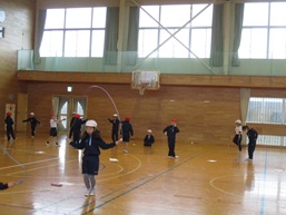 授業では、本日最後のなわとびとなりましたが、みんな少しずつ記録が伸びました。前跳びと後ろ跳びの回数が増えた子、あや跳びや交差跳びが得意になった子、二重跳びができるようになった子、練習を重ねた成果がでています。これからも、休み時間や自宅で、なわとびを楽しんで、体力をつけてほしいと思います。