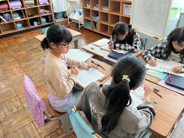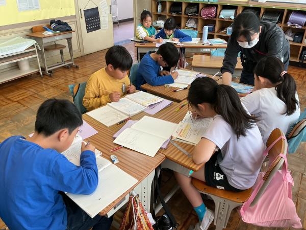 4年生の算数では、協力しながら折れ線グラフのかき方を学習していました。