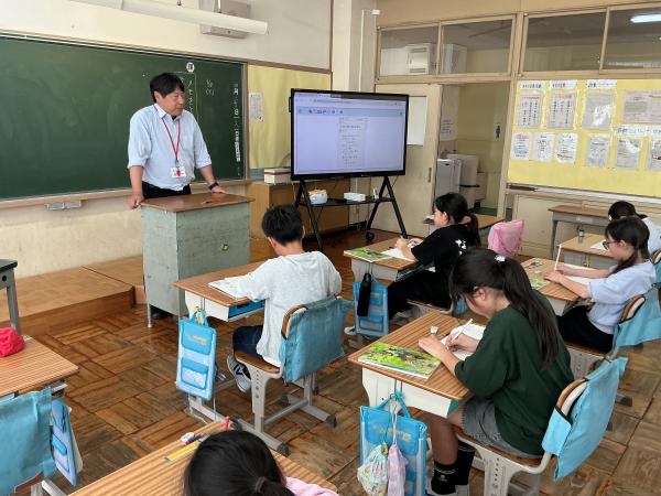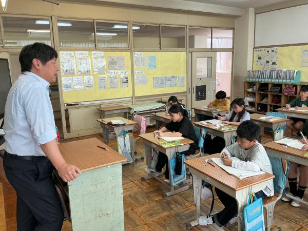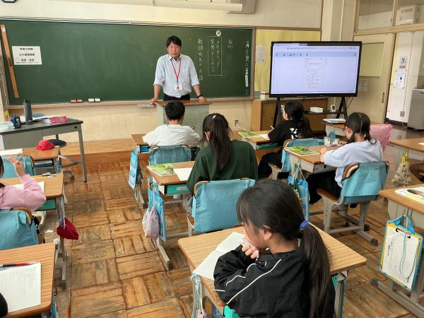 4年生の国語では、 『話を聞いて質問しよう』の授業が行われていました。 教頭先生のお話を聞き、さらに詳しく知りたいと思ったことを積極的に質問していました。 授業が終わった後も、「もっと聞きたかった!」という児童の声が絶えませんでした。 主体的に学ぶ姿、大変すばらしいです。