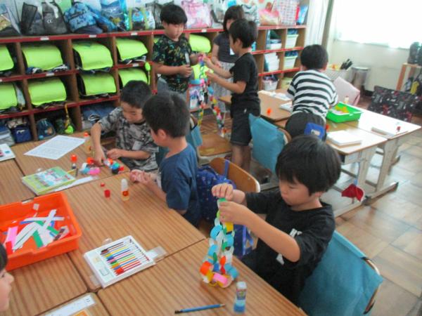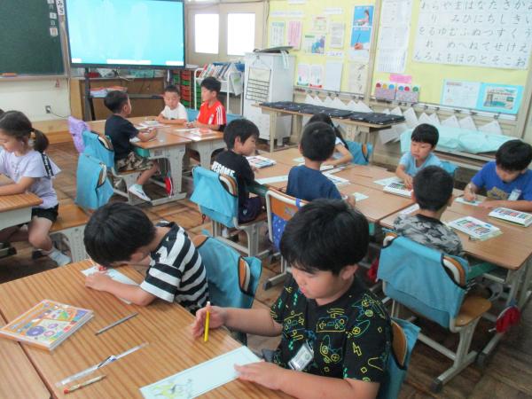 書き方の学習をしました。姿勢に気を付けて行います。書写が終わったので、お別れするお友達とゲームをして遊びました。楽しくできました。