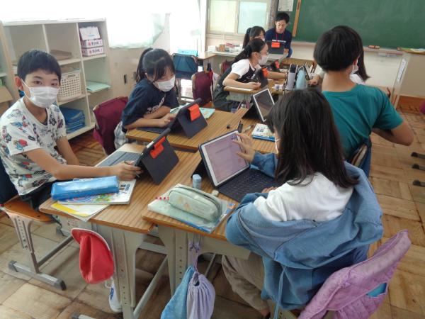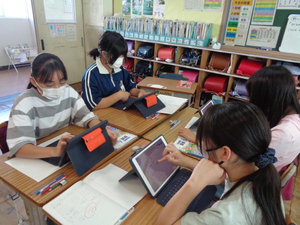 図工で工作をしたり、絵を描いたりして芸術の秋を感じます。 高学年はタブレットを使った学習に取り組んでいました。 みんな、生き生き授業に参加しています!