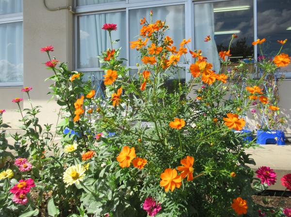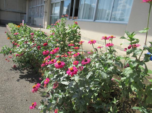 先週までの暑さが落ち着き、日中も過ごしやすい気候でした。昼休みはドッジボールやおにごっこなど、校庭で楽しく遊んでいました。花壇の花も、暑さを乗り越えきれいに咲いています。