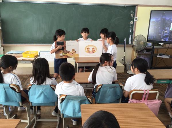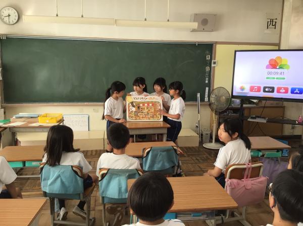 生き物係さんは家で録音した「コオロギ」の鳴き声を聞かせてくれました。読み聞かせ係は紙芝居を読んでくれました。各係が、クラスの友達を楽しませるためにがんばっています。