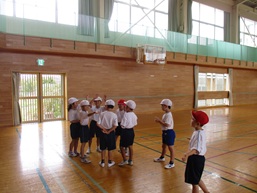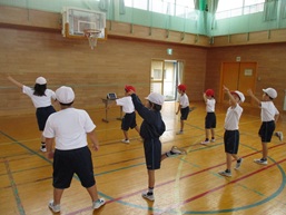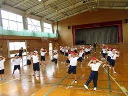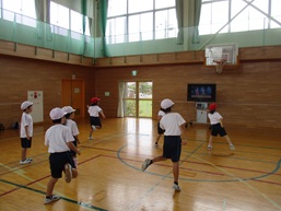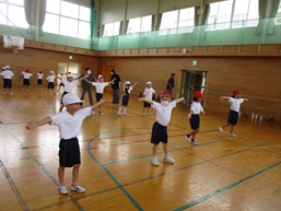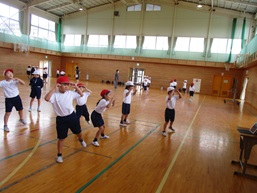 今日の体育の時間は、体育館で行いました。グループごとに2年生がリーダーとなって、声をかけ合ってダンスの練習に励んでいました。