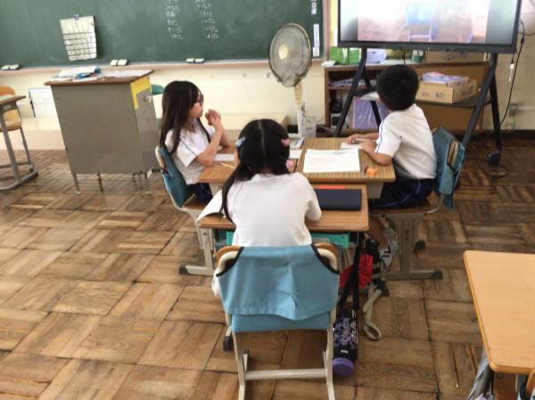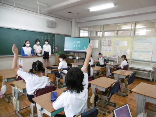 司会を立てて、「スーポーツフェスティバルの合言葉」を考えました。司会を初めて行う人もいましたが、教科書の流れを参考にしながら上手にまとめました。