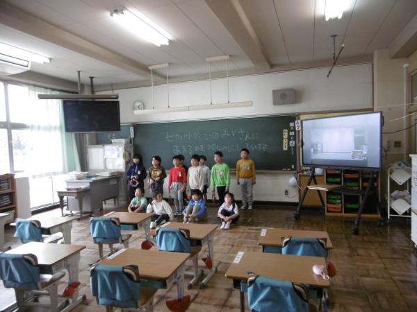 ロング昼休みに七会小とのzoom交流会を行いました。 七会小の3~6年生が11/18の「世界あそび万博」に一緒に参加することになりました。 今日はzoomを使って、お互いの学校紹介やメッセージ交換を行いました。 18日に一緒に遊べることを楽しみにしています。