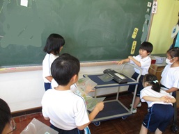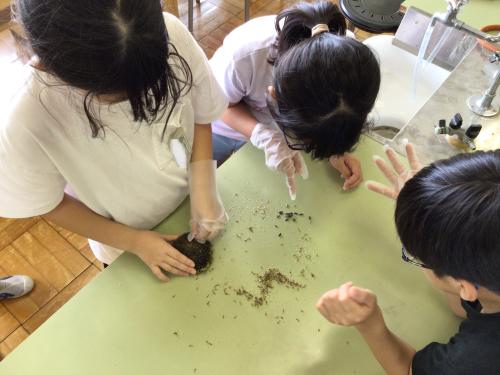 3年生の理科では、枯れたヒマワリを観察した後、興味津々で実をとりだしました。子供たちは、次回の授業で実を詳しく調べることをとても楽しみにしていました。