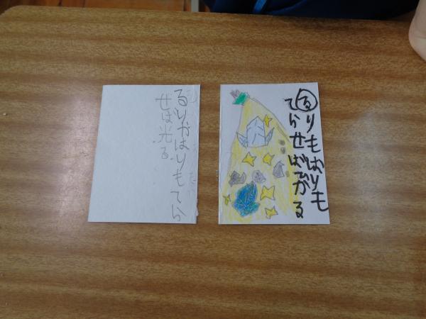 6年生は、税の絵はがきコンクールの絵を描いていました。とても上手に仕上がりました。 4年生は、国語で百人一首を学習し、カルタを作成しました。 5年生は、楽器を使ってアンサンブルを楽しみました。