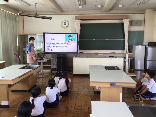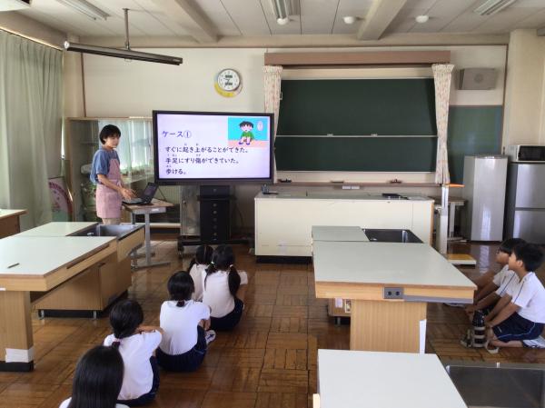 9月9日が近いので、「救急」について学びました。保健の先生の話を真剣に聞いていました。安全に気をつけて生活することと、もしもの時の対処方を学びました。 AEDを使わなくてはならない場面では、すぐに先生や大人に伝えることの大切さや、周りで大騒ぎすることがないようにみんなで考えながら話を聞きました。 鼻血の正しい止め方や怪我の自分でできる処置も聞きました。