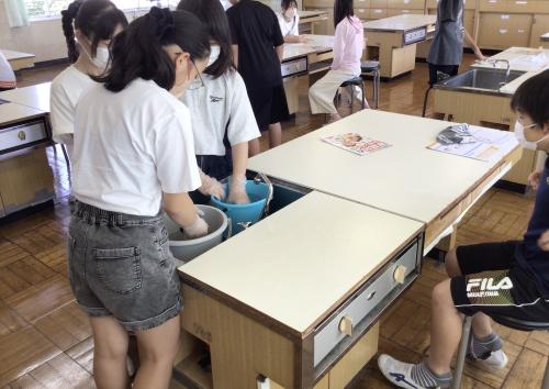 6年生の家庭科の授業では、手洗いでの洗濯実習をしていました。洗濯の大変さや、洗濯機のありがたみを改めて実感しました!お家でもぜひ実践してみてくださいね!