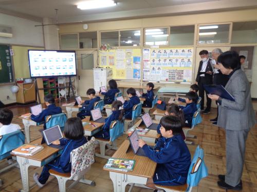 本日は2時間目にお客様がお見えになりました。 どの学年も集中して授業に取り組んでいました。 タブレットを有効的に活用しているクラスが多かったです。