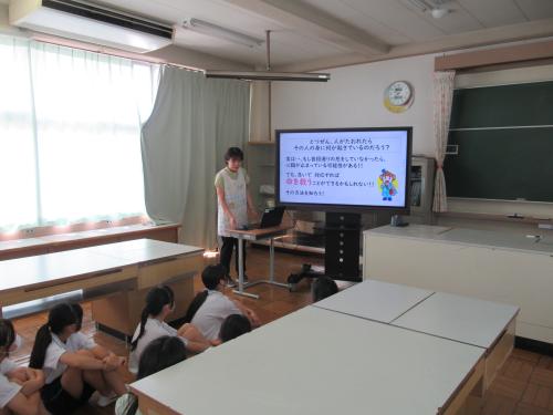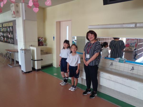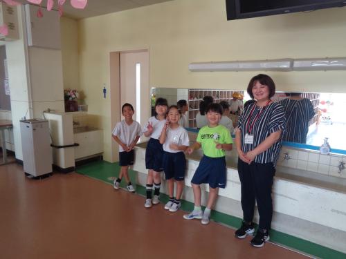 朝の昇降口には、教務主任の先生のとなりに、有志のみなさんが自主的にあいさつ運動をしています。 元気に「おはようございます!」と登校したみんなにあいさつをしています。少しずつその輪が広がっています。