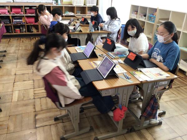 2年生は算数「三角形と四角形」の学習で、同じ大きさの長方形や正方形、直角三角形をすきまなく並べていろいろな模様を作りました。どのような模様になるか楽しみながら作ることができました。