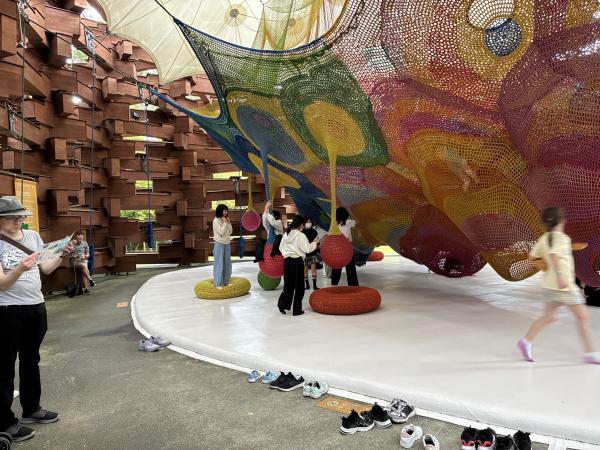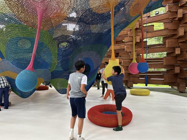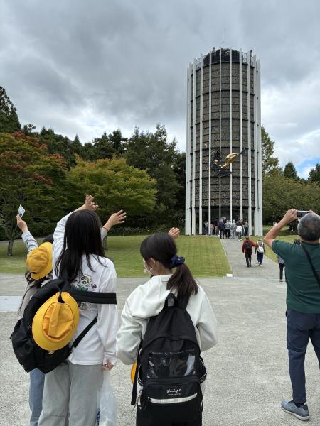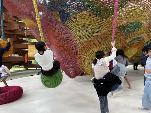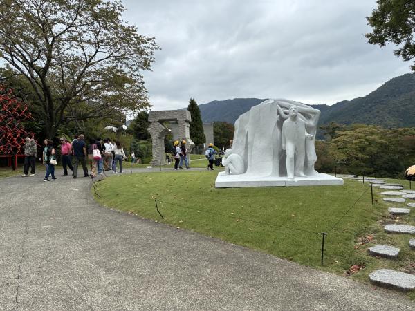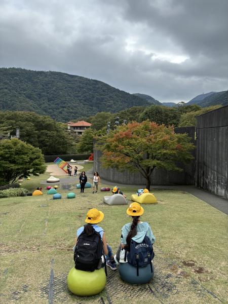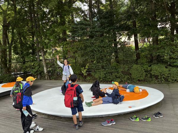 彫刻の森美術館で、芸術作品に触れ、ネットの森で遊び、足湯に入り、お土産を買い、大変有意義な時間を過ごしました。 全行程を終え、バスで学校に向かっています。