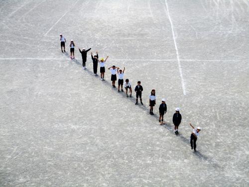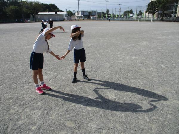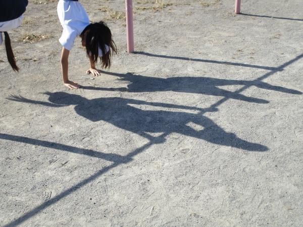 3年生の理科の学習の様子です。太陽の反対側にできるかげを楽しみながら観察しました。
