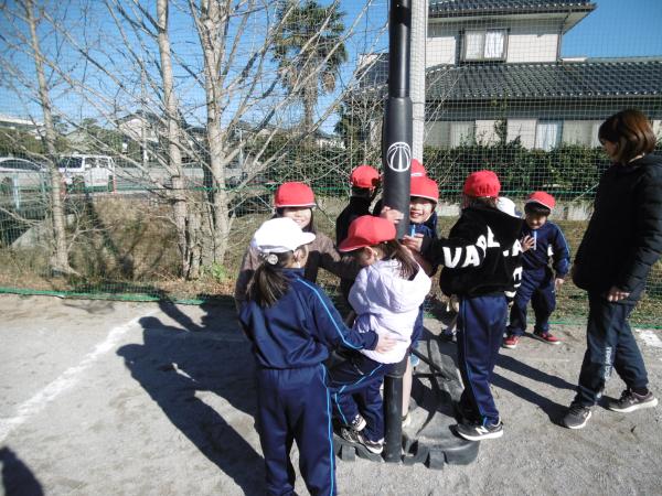 今日は、みんなで凧あげをして楽しみました。穏やかな日でしたが、時折吹く風に乗って、どの凧も高くあがっていました。「あがった、あがった~。」と喜びの声がたくさん聞こえていました。
