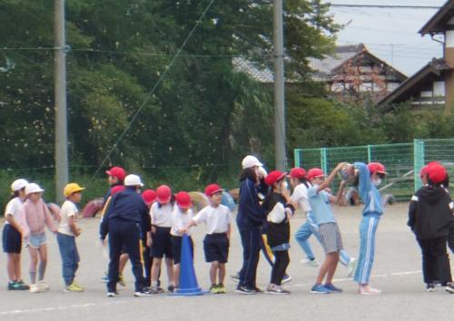 体を動かしながら、楽しく英語に親しんでいます。