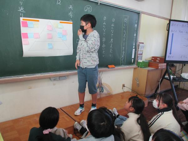 算数ではコンパスを使って素敵なデザインのこまを作りました。コンパスの使い方に少しずつ慣れてきましたが、まだ、中心がずれたり、又が広がったりと苦戦する様子も見られます。家でも、自主学習で練習をするとよいと話しました。
