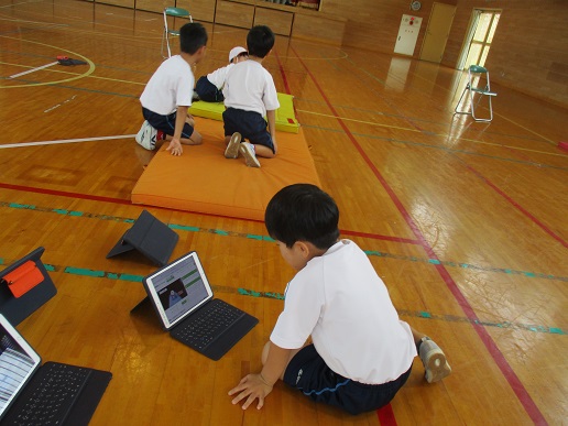 チョッキン パッの作品を鑑賞しました。友達のいいところをたくさん見つけて、交流しました。「お花みたいで、きれいだね。」「はさみの使い方が上手だね。」「私もまねをしたい。」といった発表がありました。