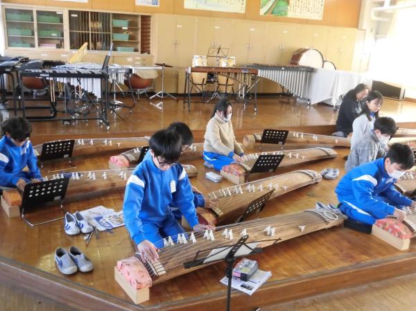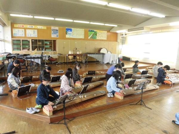 今年度も本校保護者の方に外部講師をお願いし、昨日と今日の2日間、4・5・6年生が箏教室を行いました。日本の伝統楽器の音色や音楽の特徴に興味をもち、主体的に音楽活動に取り組むことができました。