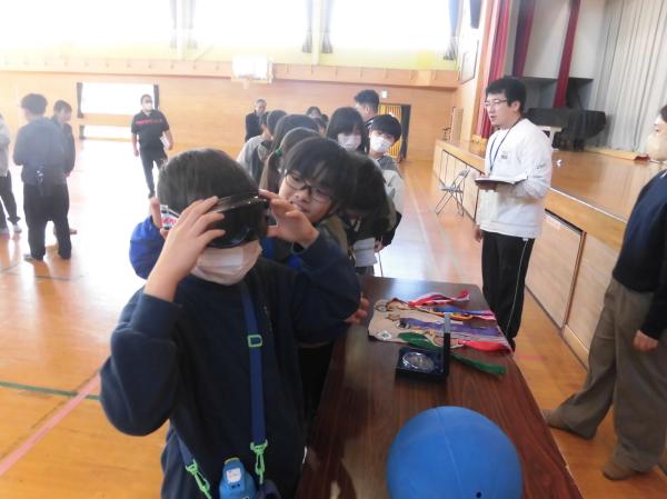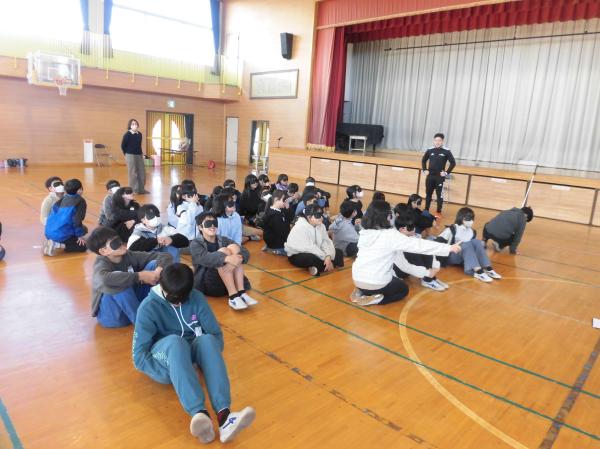 体験会では、アイマスクで視界を閉ざした状態でどうしたら上手に伝え合うことができるかを考え、言葉によるコミュニケーションの大切さを学びました。また、実際にゴールボールの体験もしました。