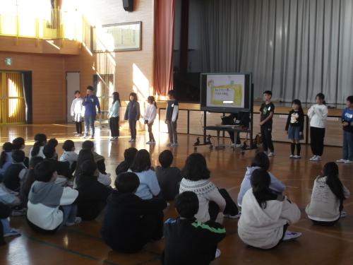 友達や周囲の人への思いやりの心、仲よく生活していこうとする心を養うために集会が行われました。全校児童が自分で考えたメッセージを発表し、その思いを確かなものにしました。