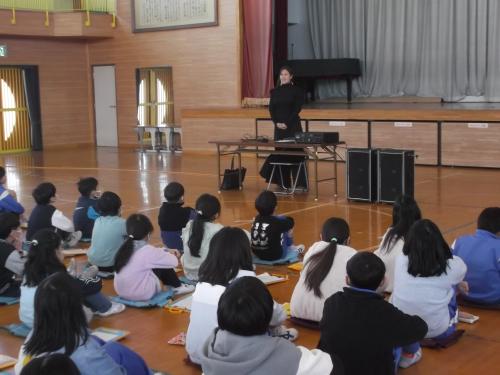 つくばみらい市出身の元宝塚歌劇団員、紫咲大佳(しざき ひろか)様にご来校いただきました。講話後のミュージカル風台詞体験では、宝塚歌劇団員になった気分で、児童は大喜びでした。
