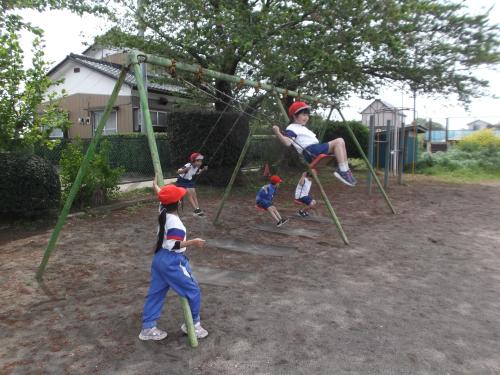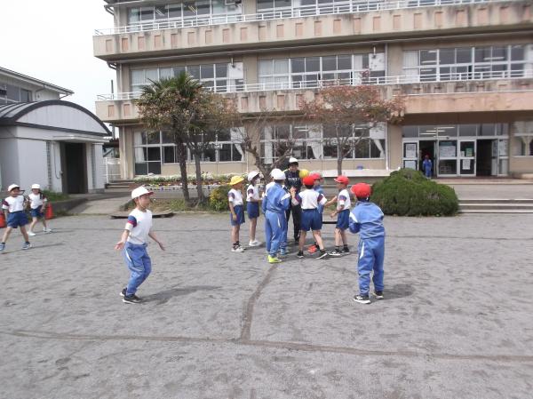 休み時間は、学年のわくを超えて全校児童が仲よく遊んでいます。1年生は上級生から「一緒に遊ぼう」とたくさん声を掛けられていました。