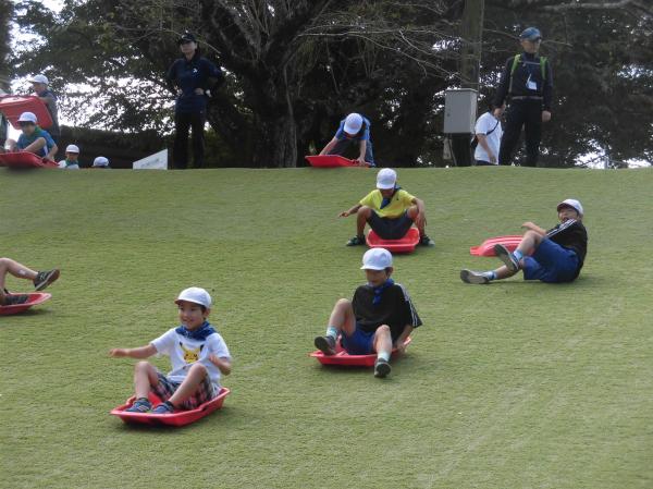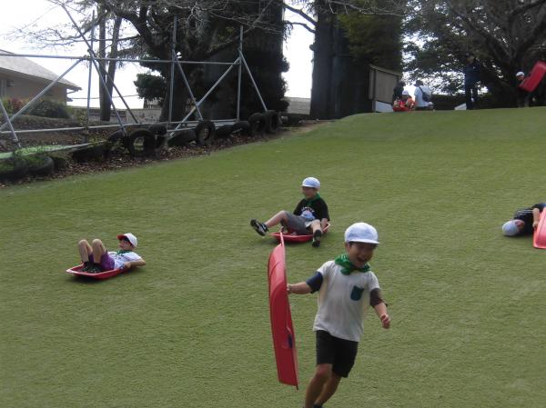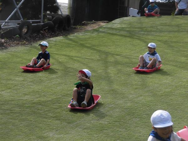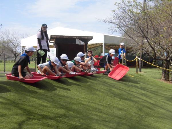さわやかな秋晴れのもと、1・2年生は「成田ゆめ牧場」へ校外学習に行ってきました。 朝イチ、早速みんなで芝滑りを楽しみました。ほぼ貸し切り状態で、思う存分できました。