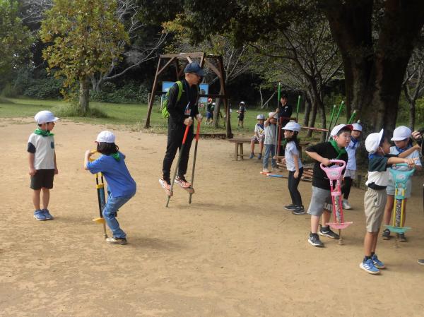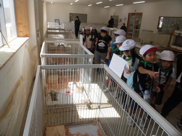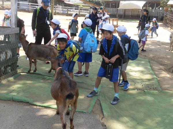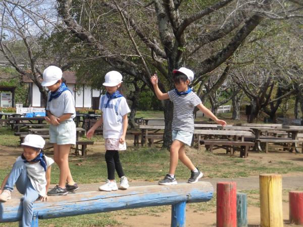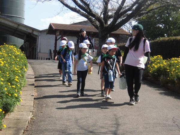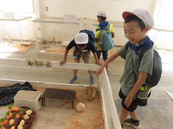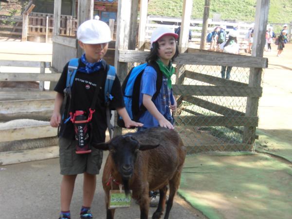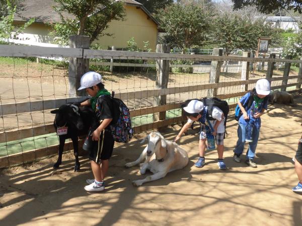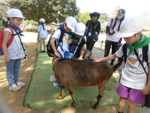 「やぎ」や「ひつじ」とふれあいました。 はじめはおっかなびっくりでしたが、だんだんと慣れてきました。 その後、広場で自由に遊びました。