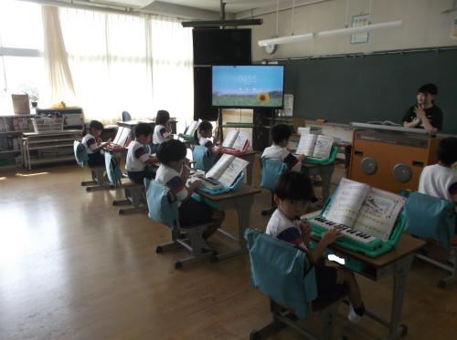 1年生教室から鍵盤ハーモニカのすてきな演奏が聞こえてきました。リズムを揃えようと繰り返し練習していました。