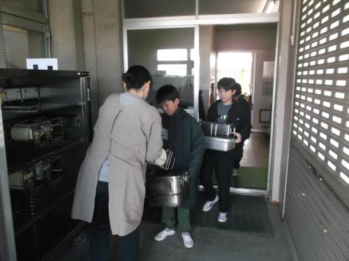 給食が終わると当番が食器等を配膳室に戻します。用務員さんに「お願いします。」と丁寧に手渡しをし、最後に全員そろって「ごちそうさまでした。ありがとうございました。」とあいさつをします。