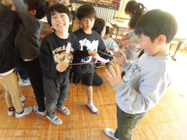 保護者ボランティアの方にご来校いただき、昔の遊びを教えてもらいました。お手玉、あやとり、けん玉・・・たくさんの遊びを体験することができました。