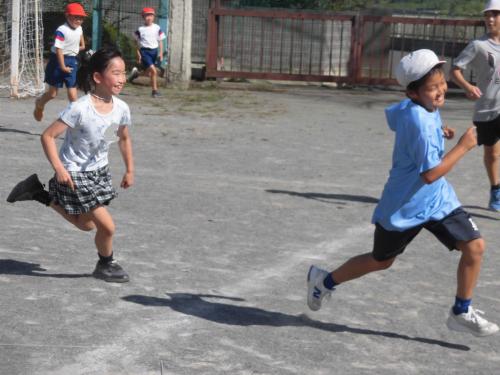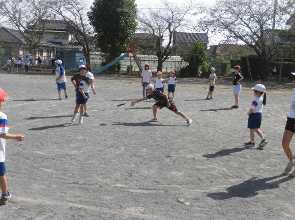 今日は「仲よしロング昼休み」の日でした。 6年生が中心となって、1~6年生の縦割り班で、班ごとに考えた外遊びを行いました。 ドッジボールや鬼ごっこなど、校庭に子供たちの笑顔があふれていました。