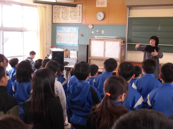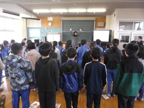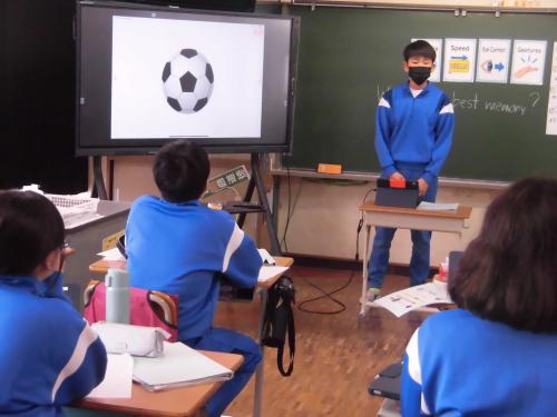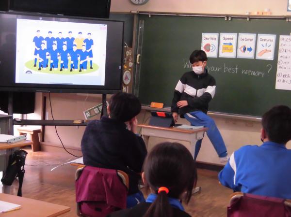 6年生は英語で、小学校での思い出と中学校や将来についての抱負について、スピーチをしました。一人一人が、画像を提示しながらジェスチャーも交え、堂々と発表していてとても感心しました。練習の成果がよく表れていました。