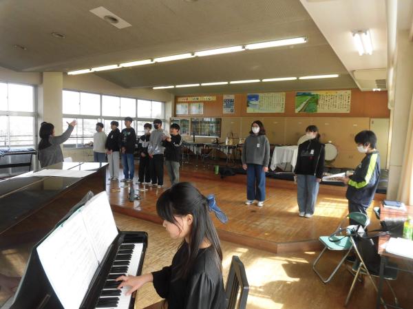 卒業式に向けた合唱練習が始まりました。外部講師の先生から①心を込めて②言葉を大切にして歌うことの大切さについてアドバイスをもらいながら、在校生も卒業生も真剣に練習に取り組むことができました。