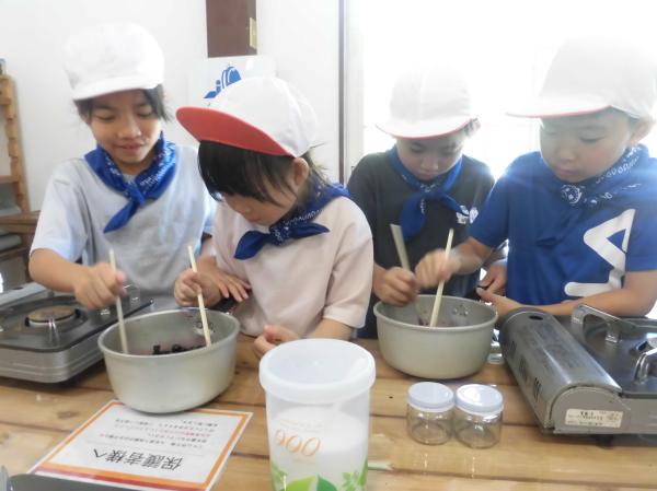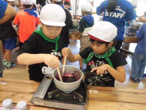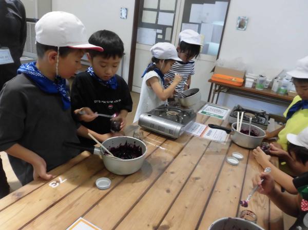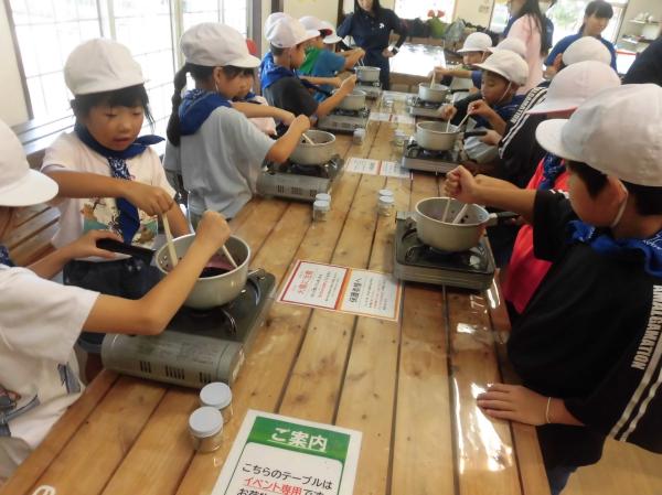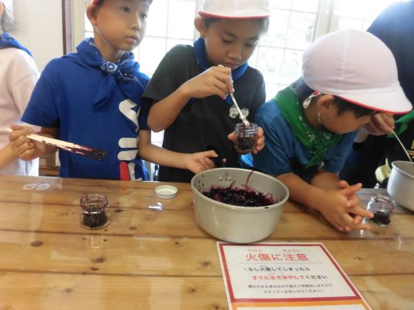 最後は、2人1組になって「ジャムづくり体験」です。 ブルーベリーを丁寧につぶすところからはじめ、瓶詰めまで完全無添加手作りブルーベリージャムができあがりました。 お家で、皆さんでぜひご賞味ください。 普段、学校ではできない充実した体験を、仲間とともに楽しく行うことができた、素敵な一日となりました。